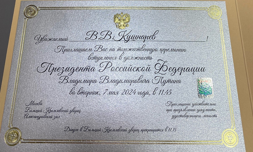 Фото: Приглашение на инаугурацию Путина, кадр из ВК Виталия Кушнарева Бывший сити-менеджер Ростова Виталий Кушнарёв получил приглашение на инаугурацию президента Владимира Путина.