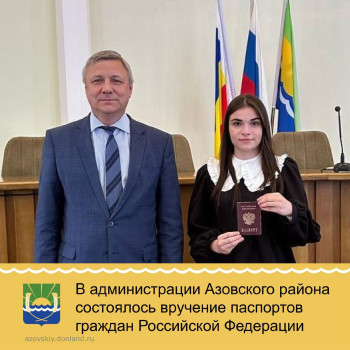 Глава администрации Азовского района Александр Палатный вручил паспорта юношам и девушкам, достигшим 14-летнего возраста.