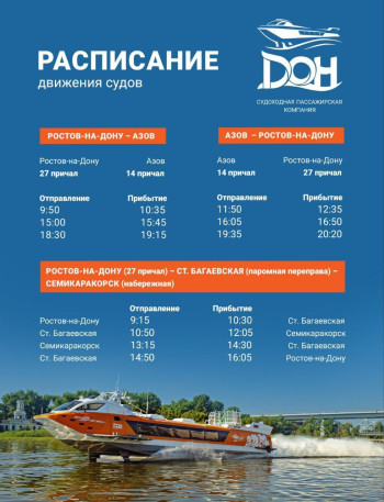 Уважаемые жители и гости Семикаракорского района! Судоходная пассажирская кампания «Дон» с июля запускает регулярные пассажирские перевозки по маршруту: