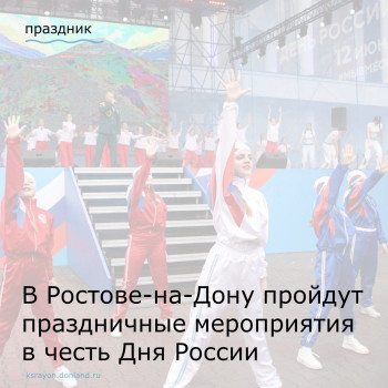 С площадками, локациями и программами красносулинцы могут ознакомиться по ссылке https://clck.ru/3BBeDn В Красном Сулине праздничный концерт «Россия - Родина моя» состоится в районном Дворце культуры 12 июня в 12:00.