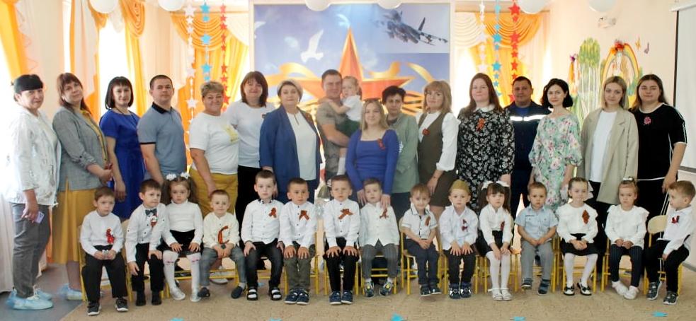 Предварительно с воспитанниками в группах были проведены беседы о подвигах советских людей и военнослужащих в наше время, оформлены родительские уголки, украшен зал, были сделаны всем обучающимся георгиевские ленточки - символ Дня Победы, а праздник стал итогом этих мероприятий. Воспитанники детского сада читали стихи о силе, отваге, о солдатах, исполнили танцевальные композиции песен военных лет- «Летчики», «Танкисты», «Морячка», танец-инсценировка «Пехотинцы и медсестры», исполнили Гимн России, флешмоб «Встанем», пели песни «Наша Родина сильная», попурри военных песен вместе с родителями. Все присутствующие почтили память о погибших героях войны минутой молчания.