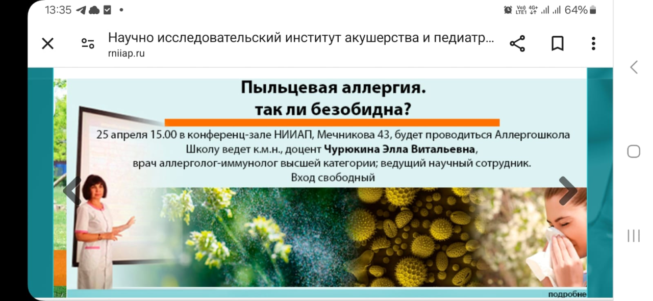 Бесплатные занятия городской «АллергоШколы» для всех желающих пациентов проводятся в научно-исследовательском институте акушерства и педиатрии Ростовского медицинского университета с 2018 года.